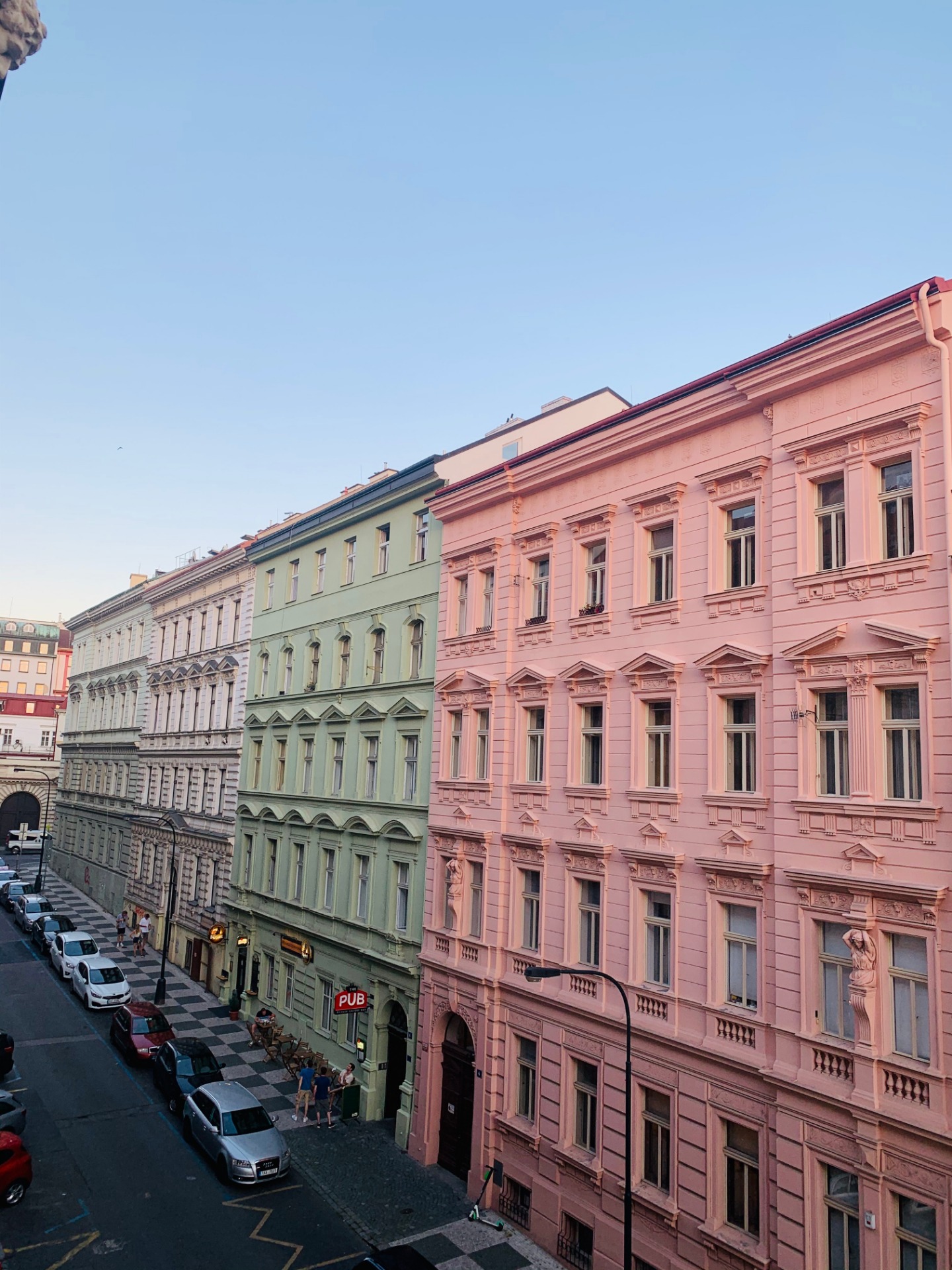 Táto Praha čarovná. Pohľad z posedenia na okne s Moetom v ruke a krikom kamošky nech nevypadnem. Atmosféra a oáza pokoja v chaose.